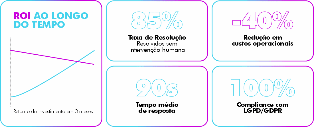 Automatizamos o suporte ao cliente através de IA e atendimento humano, garantindo respostas rápidas e precisas enquanto mantemos o toque pessoal que só uma interação humana pode oferecer.